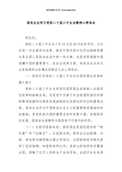 / 【七哥公文】2024年:国有企业学习党的二十届三中全会精神心得体会+更多免费公文+VX:QiGeGongWen2024