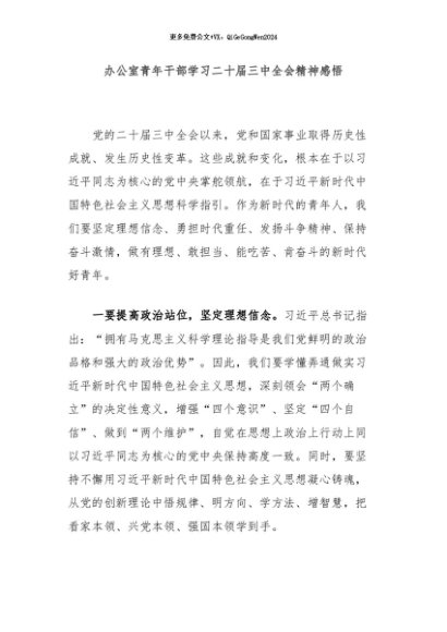 / 【七哥公文】2024年:办公室青年干部学习二十届三中全会精神感悟+更多免费公文+VX:QiGeGongWen2024