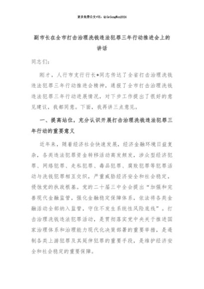 【七哥公文】2024年:副市长在全市打击治理洗钱违法犯罪三年行动推进会上的讲话+更多免费公文+VX:QiGeGongWen2024