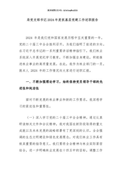 / 【七哥公文】2024年:局党支部书记2024年度抓基层党建工作述职报告+更多免费公文+VX:QiGeGongWen2024