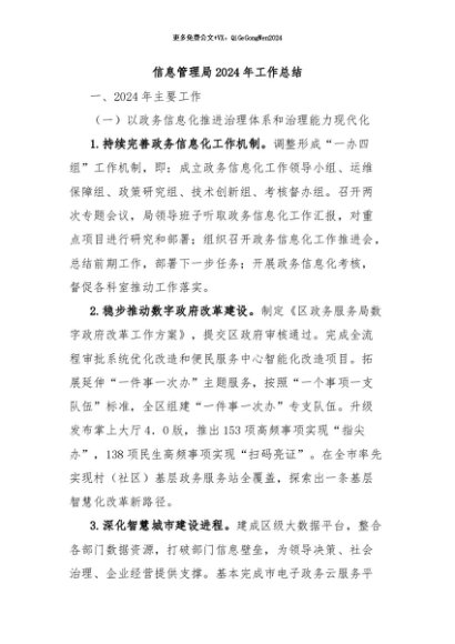 / 【七哥公文】2024年:信息管理局2024年工作总结+更多免费公文+VX:QiGeGongWen2024