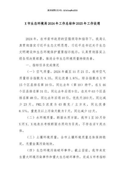 【七哥公文】2024年:X市生态环境局2024年工作总结和2025年工作设想+更多免费公文+VX:QiGeGongWen2024