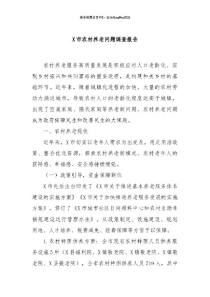 / 【七哥公文】2024年:X市农村养老问题调查报告+更多免费公文+VX:QiGeGongWen2024
