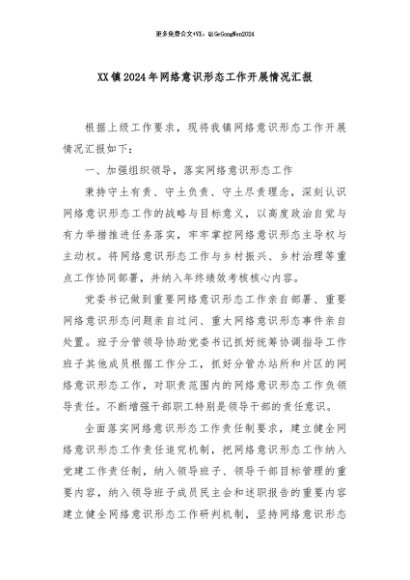 / 【七哥公文】2024年:XX镇2024年网络意识形态工作开展情况汇报+更多免费公文+VX:QiGeGongWen2024