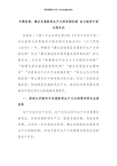 【七哥公文】2024年:专题党课:健全发展新质生产力的体制机制 奋力推进中国式现代化+更多免费公文+VX:QiGeGongWen2024