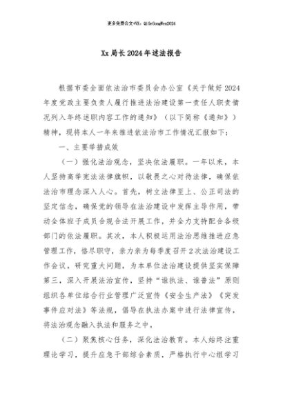 / 【七哥公文】2024年:Xx局长2024年述法报告+更多免费公文+VX:QiGeGongWen2024