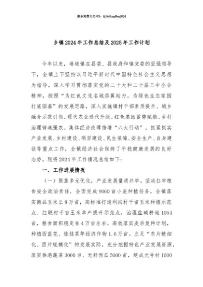 / 【七哥公文】2024年:乡镇2024年工作总结及2025年工作计划+更多免费公文+VX:QiGeGongWen2024