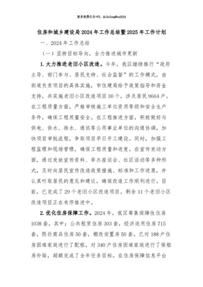 【七哥公文】2024年:住房和城乡建设局2024年工作总结暨2025年工作计划+更多免费公文+VX:QiGeGongWen2024
