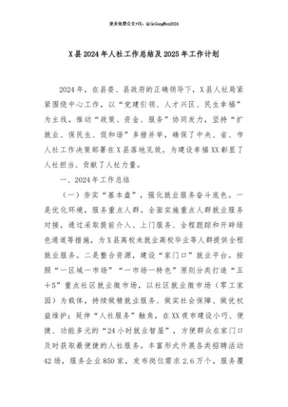 / 【七哥公文】2024年:X县2024年人社工作总结及2025年工作计划+更多免费公文+VX:QiGeGongWen2024