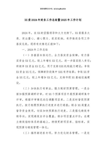 / 【七哥公文】2024年:XX委2024年财务工作总结暨2025年工作计划+更多免费公文+VX:QiGeGongWen2024