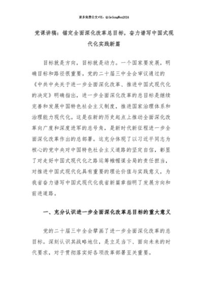 【七哥公文】2024年:党课讲稿:锚定全面深化改革总目标,奋力谱写中国式现代化实践新篇+更多免费公文+VX:QiGeGongWen2024