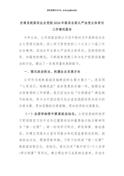 【七哥公文】2024年:交通系统国有企业党组2024年落实全面从严治党主体责任工作情况报告+更多免费公文+VX:QiGeGongWen2024