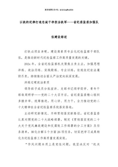【七哥公文】2024年:以铁的纪律打造忠诚干净担当铁军——省纪委监委加强队伍建设综述+更多免费公文+VX:QiGeGongWen2024