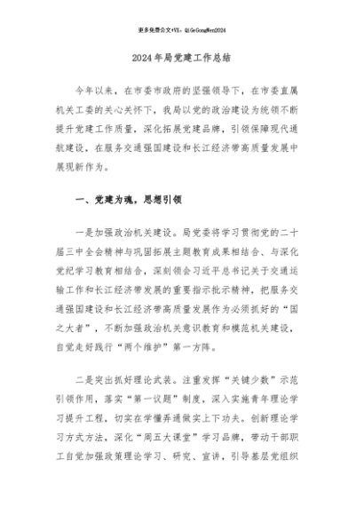 / 【七哥公文】2024年:2024年局党建工作总结+更多免费公文+VX:QiGeGongWen2024
