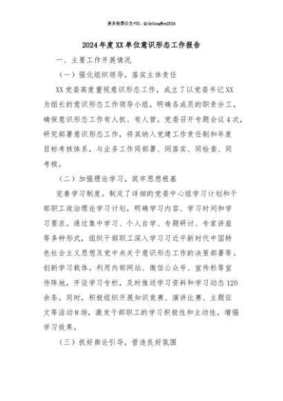 / 【七哥公文】2024年:2024年度XX单位意识形态工作报告+更多免费公文+VX:QiGeGongWen2024
