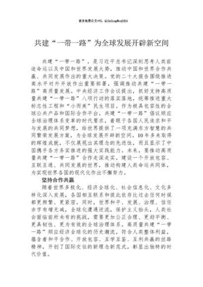 【七哥公文】2024年:12月中心组交流研讨材料:共建“一带一路”为全球发展开辟新空间+更多免费公文+VX:QiGeGongWen2024
