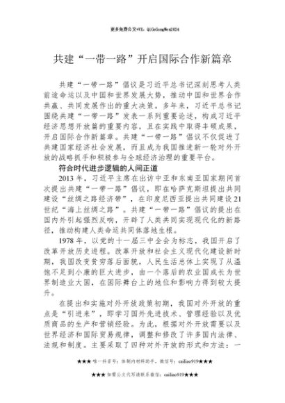 【七哥公文】2024年:12月中心组交流研讨材料:共建“一带一路”开启国际合作新篇章+更多免费公文+VX:QiGeGongWen2024