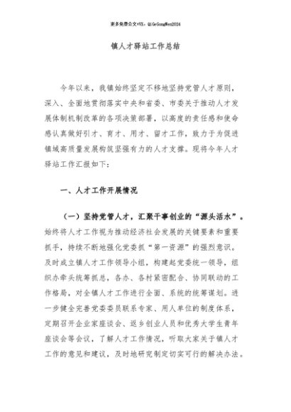 / 【七哥公文】2024年:镇人才驿站工作总结+更多免费公文+VX:QiGeGongWen2024