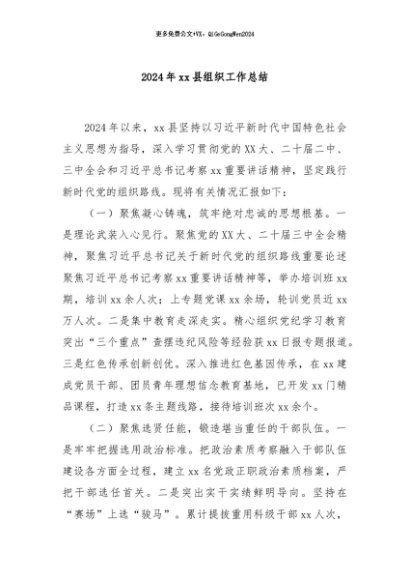 / 【七哥公文】2024年:2024年xx县组织工作总结+更多免费公文+VX:QiGeGongWen2024