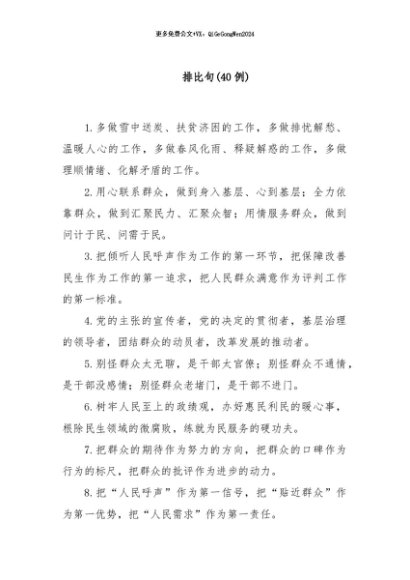 / 【七哥公文】2024年:(40例)排比句+更多免费公文+VX:QiGeGongWen2024