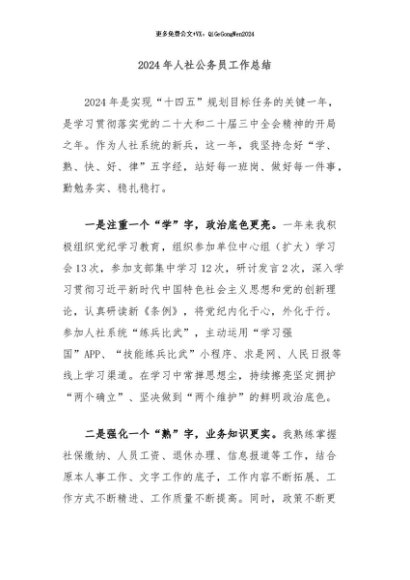 / 【七哥公文】2024年:2024年人社公务员工作总结+更多免费公文+VX:QiGeGongWen2024