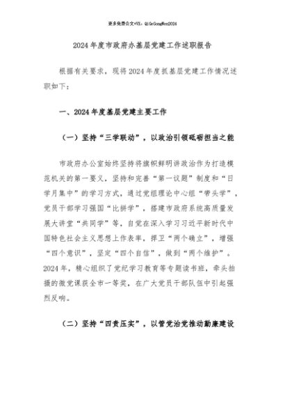 / 【七哥公文】2024年:2024年度市政府办基层党建工作述职报告+更多免费公文+VX:QiGeGongWen2024