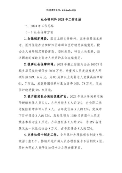 / 【七哥公文】2024年:社会福利科2024年工作总结+更多免费公文+VX:QiGeGongWen2024