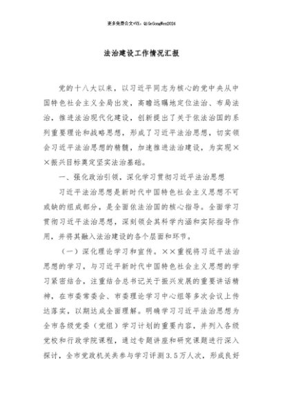 / 【七哥公文】2024年:法治建设工作情况汇报+更多免费公文+VX:QiGeGongWen2024