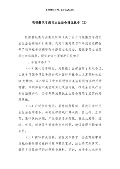 / 【七哥公文】2024年:巡视整改专题民主生活会情况报告(2)+更多免费公文+VX:QiGeGongWen2024