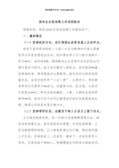 / 【七哥公文】2024年:国有企业抓党建工作述职报告+更多免费公文+VX:QiGeGongWen2024