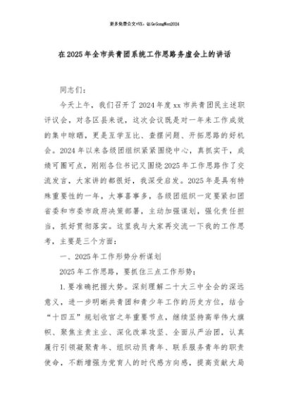 / 【七哥公文】2024年:在2025年全市共青团系统工作思路务虚会上的讲话+更多免费公文+VX:QiGeGongWen2024