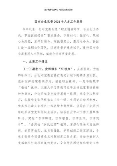 / 【七哥公文】2024年:国有企业党委2024年人才工作总结+更多免费公文+VX:QiGeGongWen2024