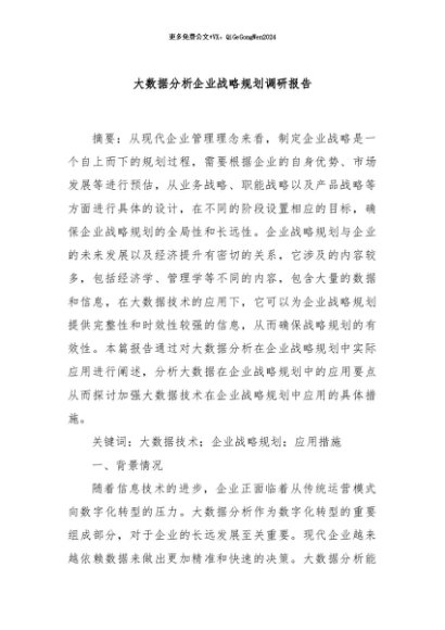 【七哥公文】2024年:大数据分析企业战略规划调研报告+更多免费公文+VX:QiGeGongWen2024