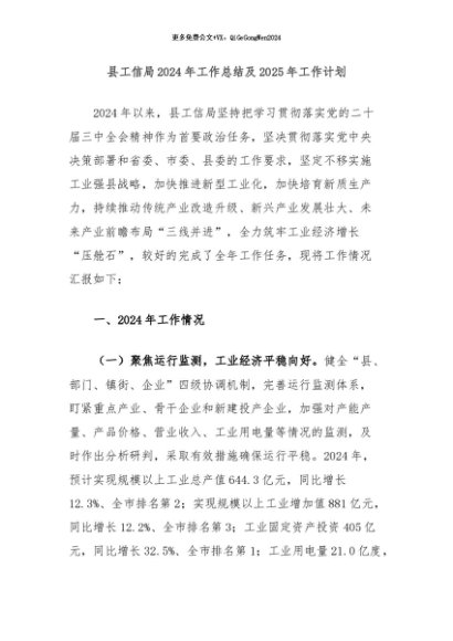 / 【七哥公文】2024年:县工信局2024年工作总结及2025年工作计划+更多免费公文+VX:QiGeGongWen2024