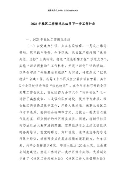 / 【七哥公文】2024年:2024年社区工作情况总结及下一步工作计划+更多免费公文+VX:QiGeGongWen2024