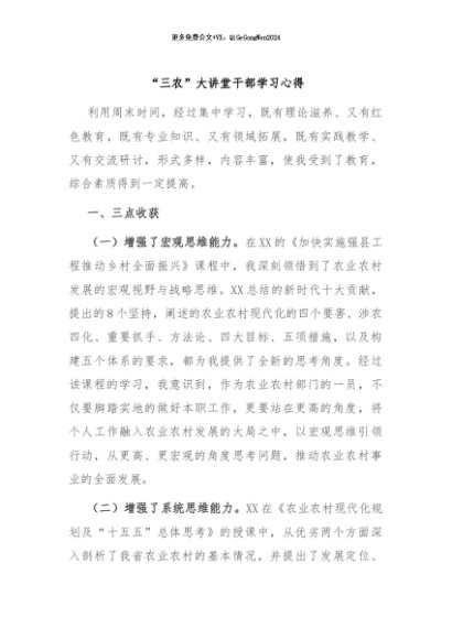 【七哥公文】2024年:“三农”大讲堂干部学习心得+更多免费公文+VX:QiGeGongWen2024
