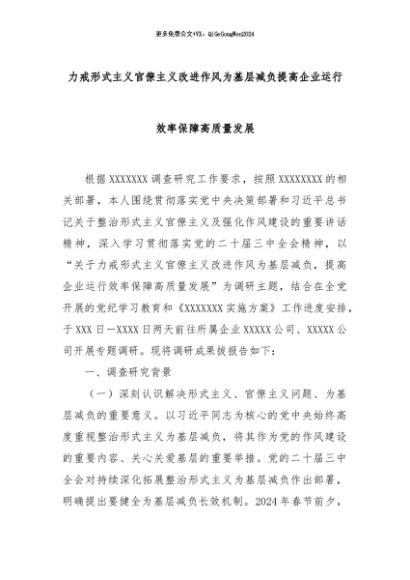 【七哥公文】2024年:力戒形式主义官僚主义改进作风为基层减负提高企业运行效率保障高质量发展+更多免费公文+VX:QiGeGongWen2024