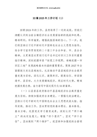 / 【七哥公文】2024年:XX镇2025年工作计划(1)+更多免费公文+VX:QiGeGongWen2024