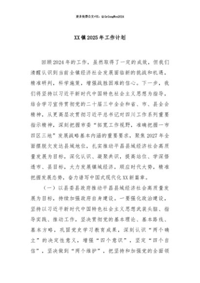 【七哥公文】2024年:XX镇2025年工作计划+更多免费公文+VX:QiGeGongWen2024