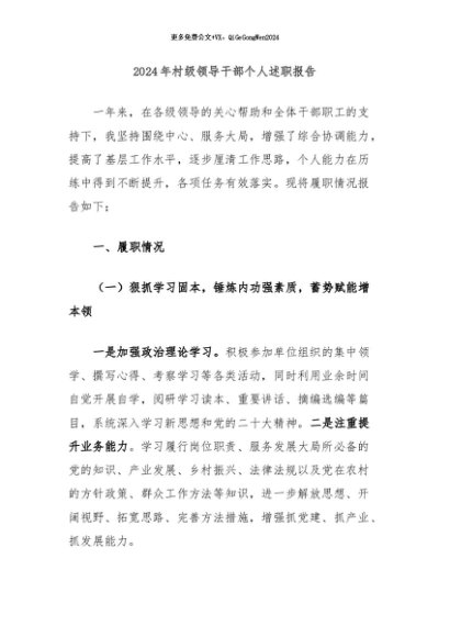 / 【七哥公文】2024年:2024年村级领导干部个人述职报告+更多免费公文+VX:QiGeGongWen2024