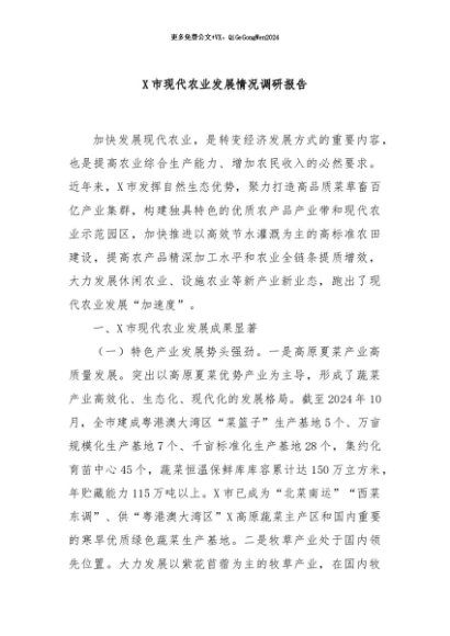 / 【七哥公文】2024年:X市现代农业发展情况调研报告+更多免费公文+VX:QiGeGongWen2024