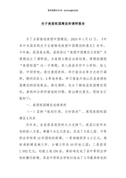/ 【七哥公文】2024年:关于美丽校园建设的调研报告+更多免费公文+VX:QiGeGongWen2024