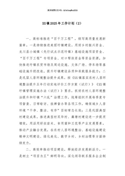 / 【七哥公文】2024年:XX镇2025年工作计划(2)+更多免费公文+VX:QiGeGongWen2024
