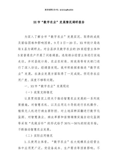 / 【七哥公文】2024年:XX市“数字农业”发展情况调研报告+更多免费公文+VX:QiGeGongWen2024