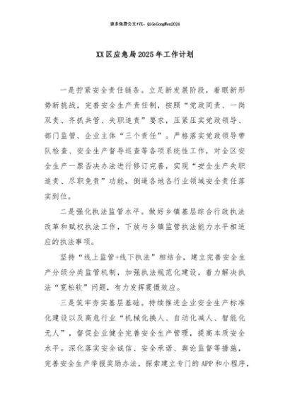 / 【七哥公文】2024年:XX区应急局2025年工作计划+更多免费公文+VX:QiGeGongWen2024