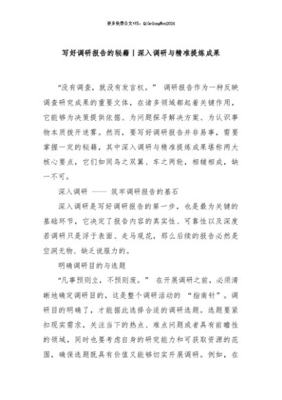 / 【七哥公文】2024年:写好调研报告的秘籍|深入调研与精准提炼成果+更多免费公文+VX:QiGeGongWen2024