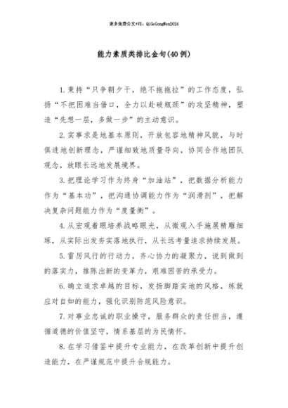 【七哥公文】2024年:(40例)能力素质类排比金句+更多免费公文+VX:QiGeGongWen2024