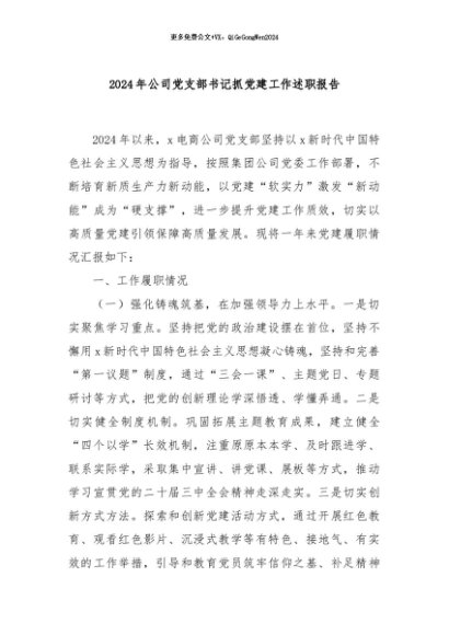 / 【七哥公文】2024年:2024年公司党支部书记抓党建工作述职报告+更多免费公文+VX:QiGeGongWen2024