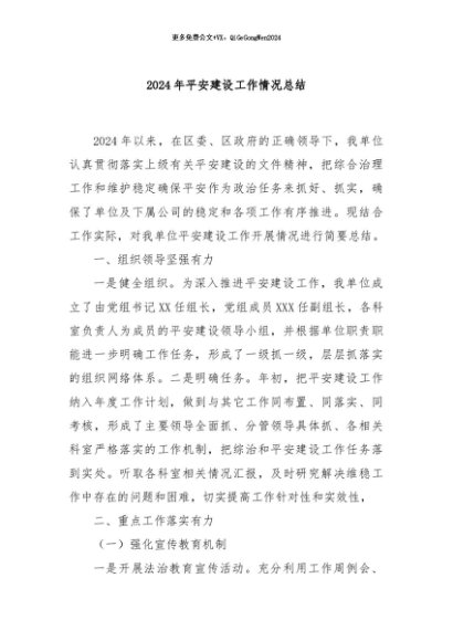 / 【七哥公文】2024年:2024年平安建设工作情况总结+更多免费公文+VX:QiGeGongWen2024