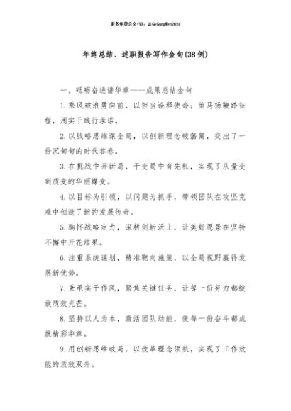 / 【七哥公文】2024年:(38例)年终总结、述职报告写作金句+更多免费公文+VX:QiGeGongWen2024